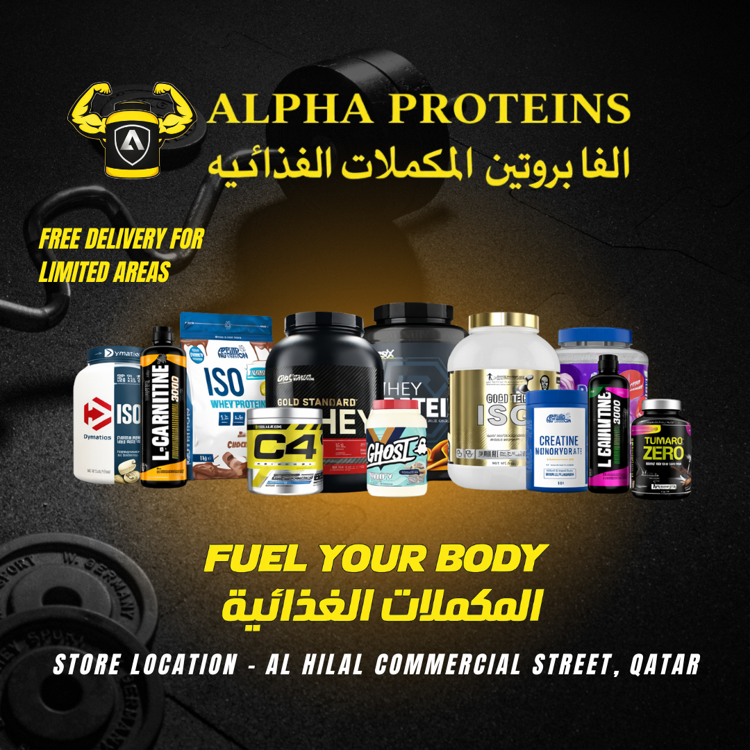 Alpha Proteins is your trusted destination for premium nutritional supplements. From high-quality whey proteins and mass gainers to creatine, amino acids, and wellness supplements, we help fuel your body for strength, performance, and recovery. Enjoy free delivery in limited areas and shop with confidence at our store located on Al Hilal Commercial Street, Qatar.