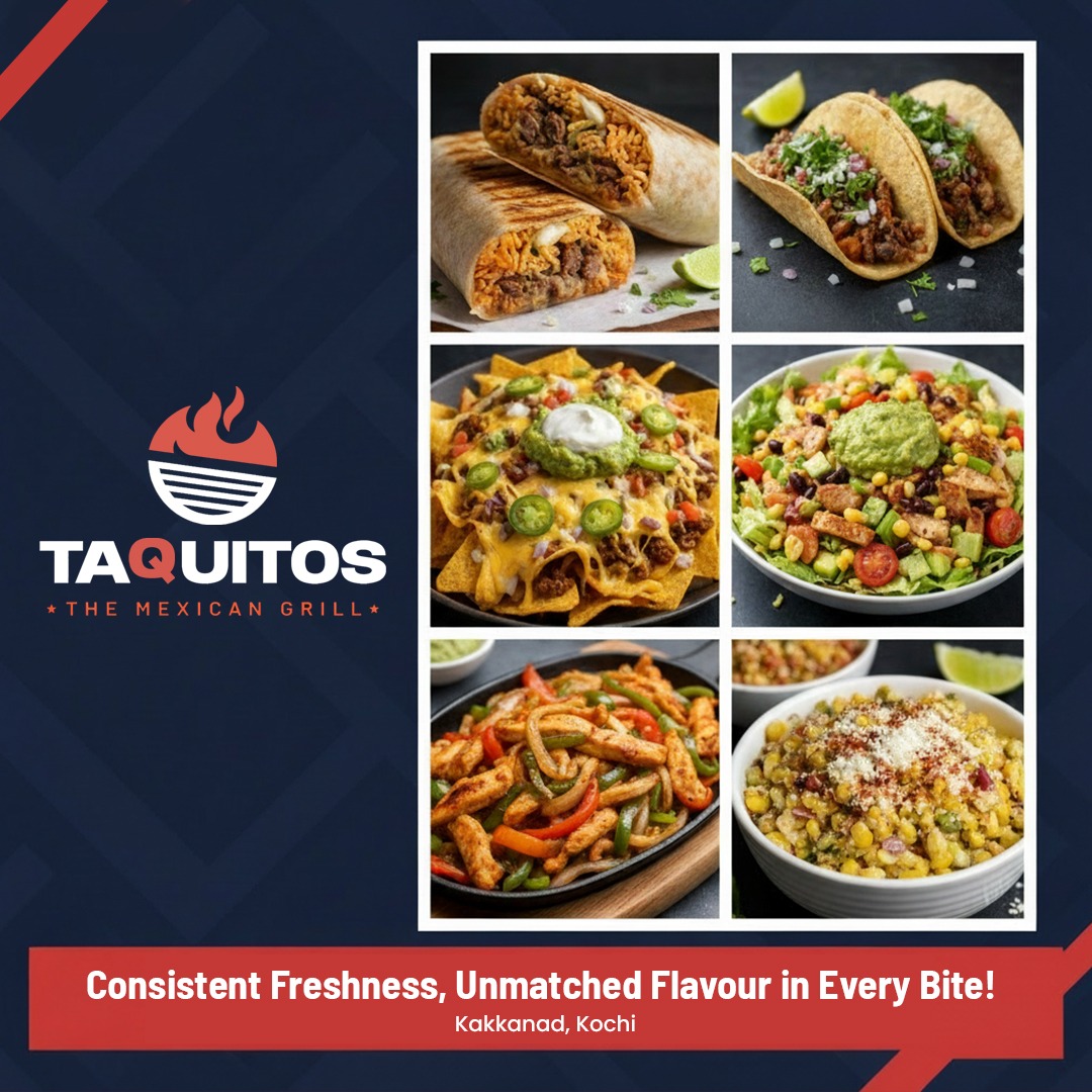 Come, grab some healthy Mexican flavours at Taquitos!Freshly prepared, packed with bold taste, and made to satisfy every craving.Now serving Kochi — order now and enjoy authentic Mexican goodness in every bite